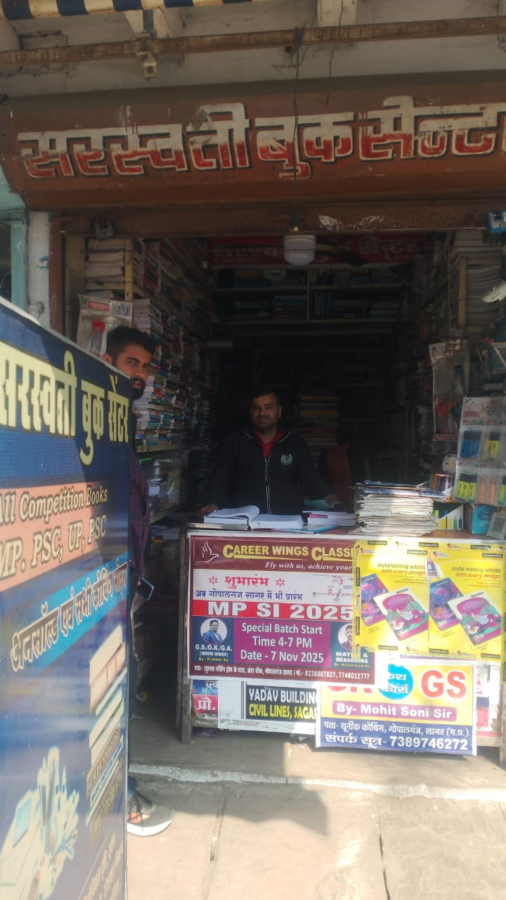 Saraswati Book Centre Sagar is highly popular among competitive exam aspirants. The store provides books for: