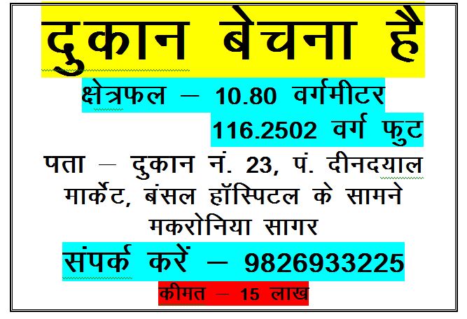 For more information about this Shop for Sale in Makronia Sagar, contact: